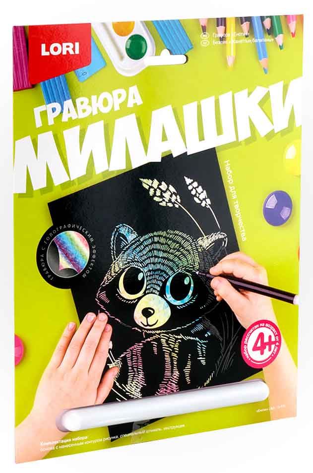 Гравюра Милашки большая с эффектом голографик Енотик Гр572