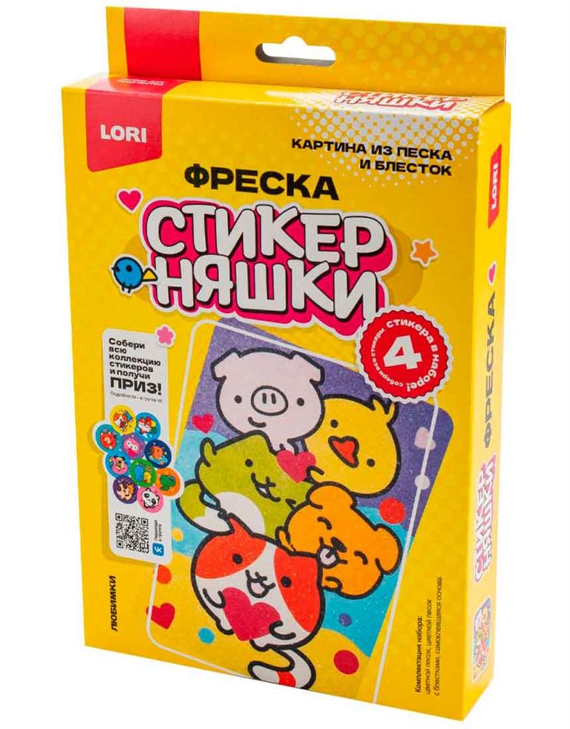 Фреска. Картина из песка и блесток Стикерняшки "Любимки" Кпо001