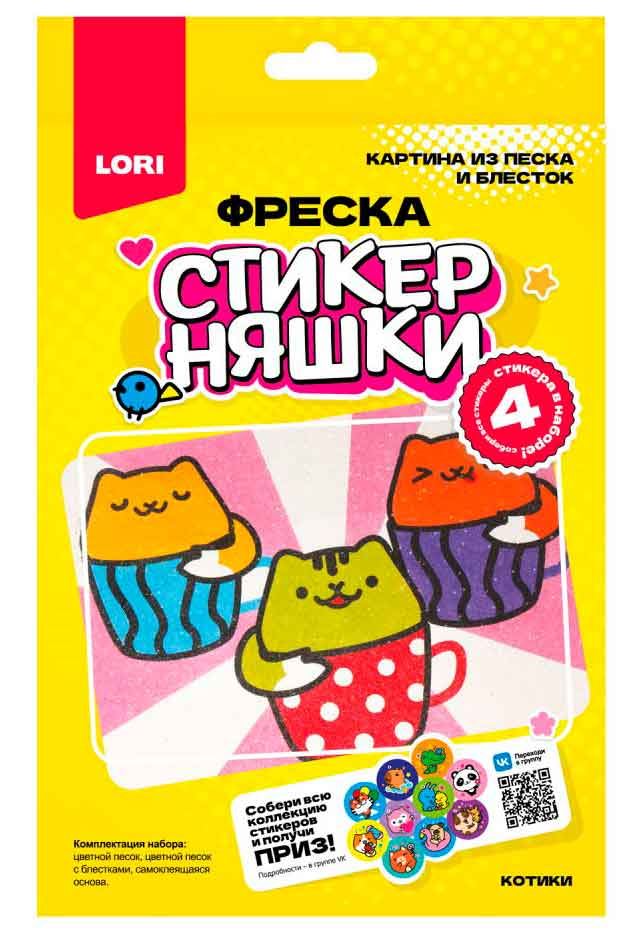 Фреска. Картина из песка и блесток Стикерняшки Котики Кпо002