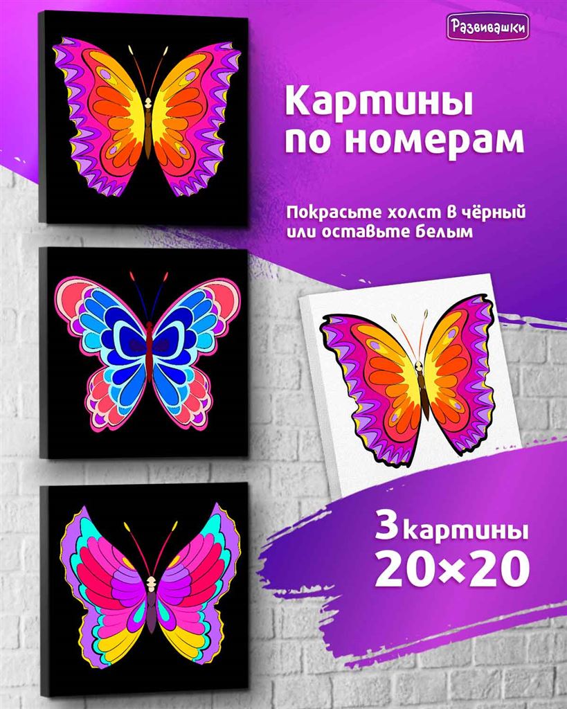 Картина по номерам 20*20 Триптих с бабочками Р3138