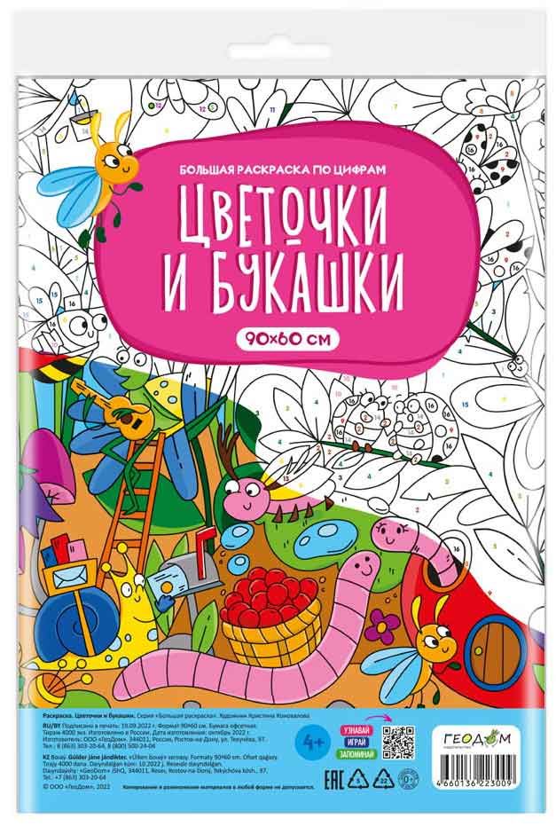 Большая раскраска по цифрам Цвнточки и букашки 90х60см. 009