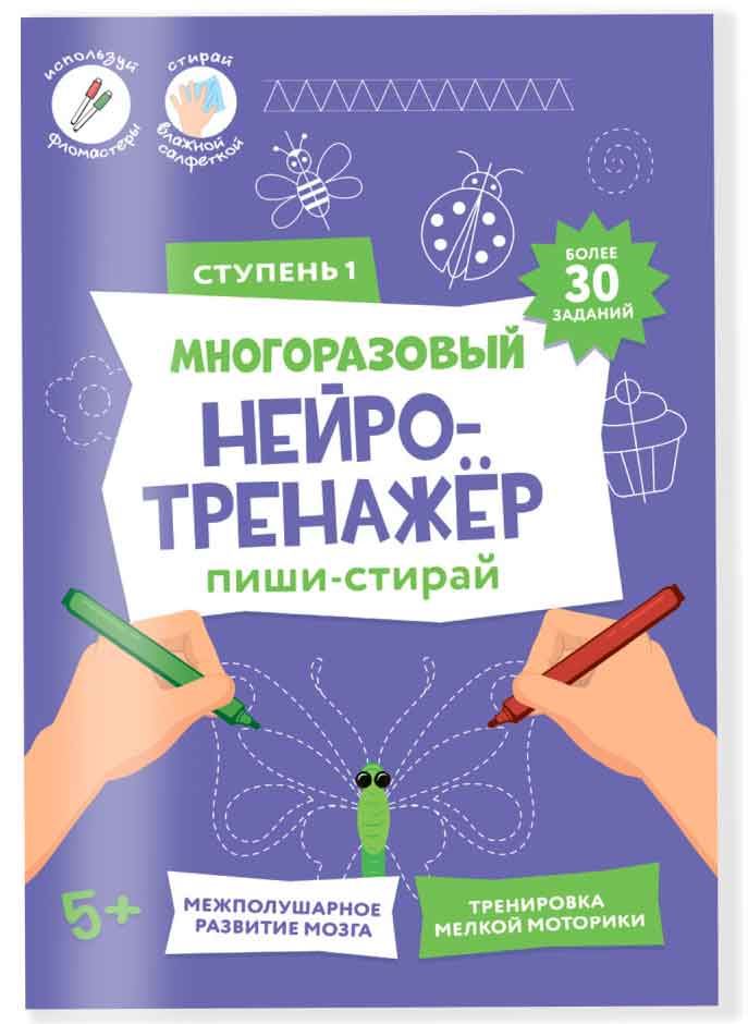 Нейротренажёр многоразовый. Пиши-стирай. 1 ступень. 5530
