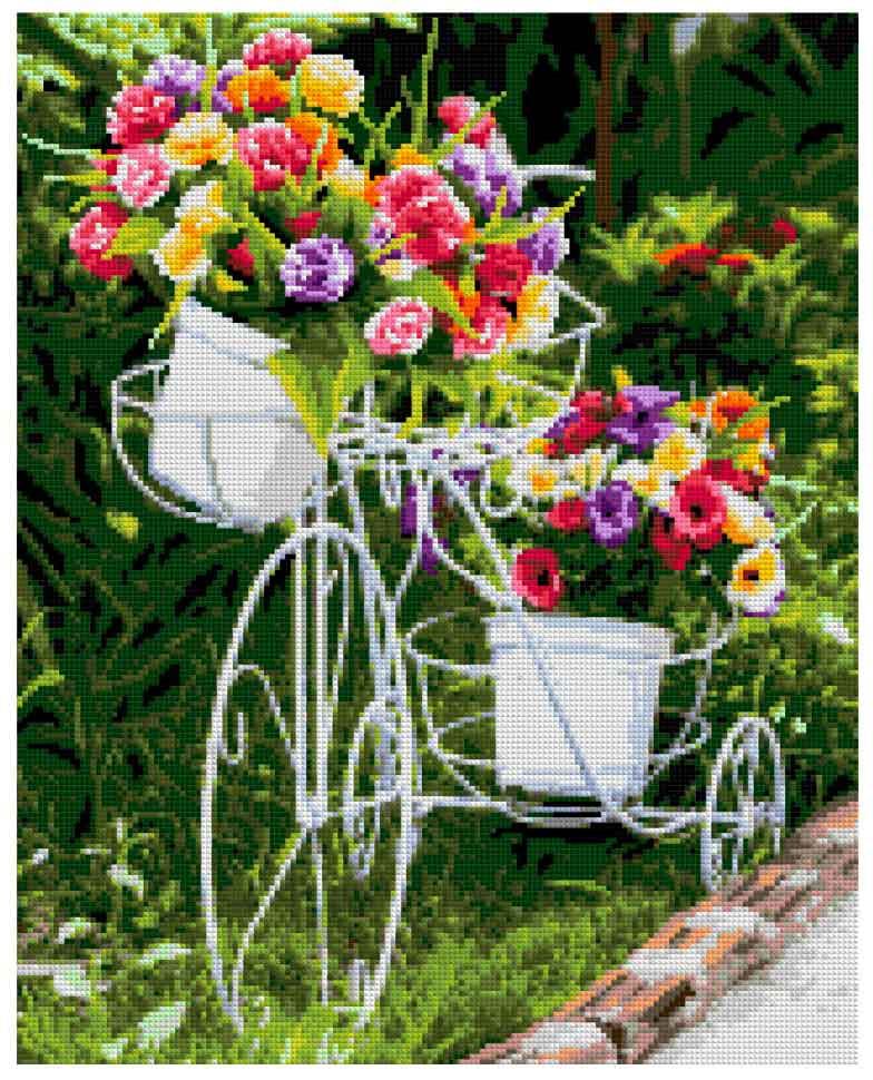 Алмазная мозаика 40*50 см (полное заполнение) Велосипед с цветами Ам136