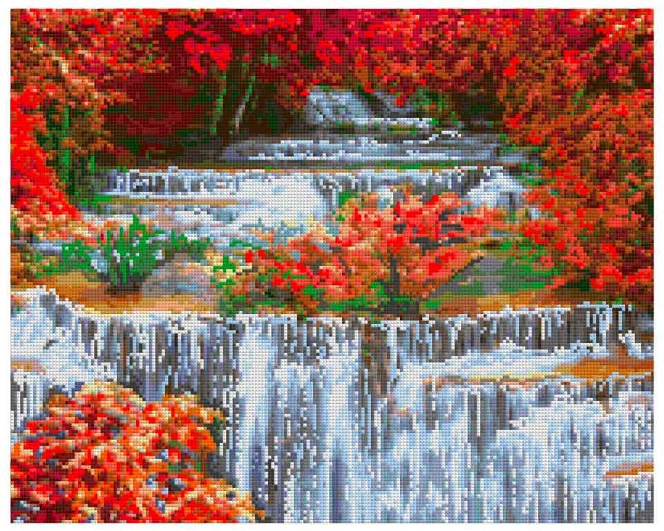 Алмазная мозаика 40*50 см (полное заполнение) Осенний водопад Ам139