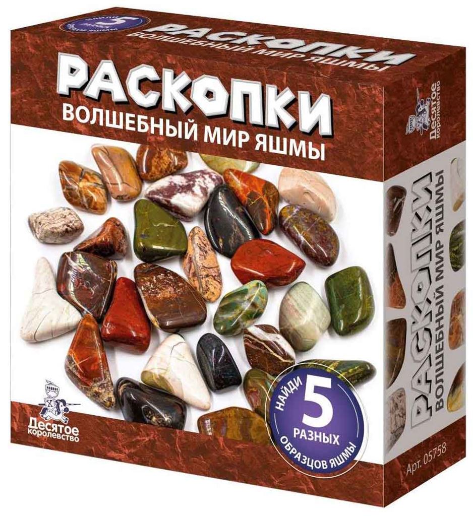 Размер упаковки: 17,5 Х 17,8 Х 6,2 см. В наборе: пласт грунта (гипс, 11х11х4 см); инструменты из пластика (щетка, стек, молоток, длина 10 см) 3 шт; натуральные самоцветы (размер камней примерно 2х3 см) 5 шт. иллюстрированный буклет с описанием камней