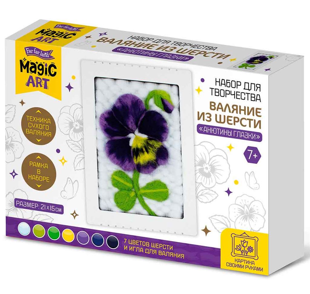 Н-р для творчества. Валяние из шерсти. "Анютины глазки" (с рамкой) 05670