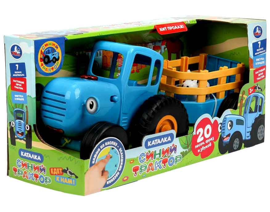 Каталка Синий трактор с прицепом + корова, 20 песен,фраз,звуков HT1471-R-WOD